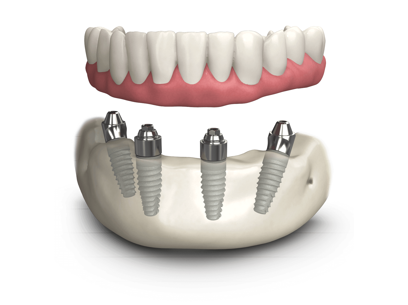 Протезирование зубов на 4 имплантах – это методика имплантации, которая применяется при полном отсутствии зубов на челюсти и предполагает установку несъемного мостовидного протеза уже в первые 3 дня после операции. Эта методика была заработана швейцарским производителем имплантов – компанией Nobel-Biocare в 1998 году, и она имеет название All-on-4 (переводится «Все на 4 имплантах»).