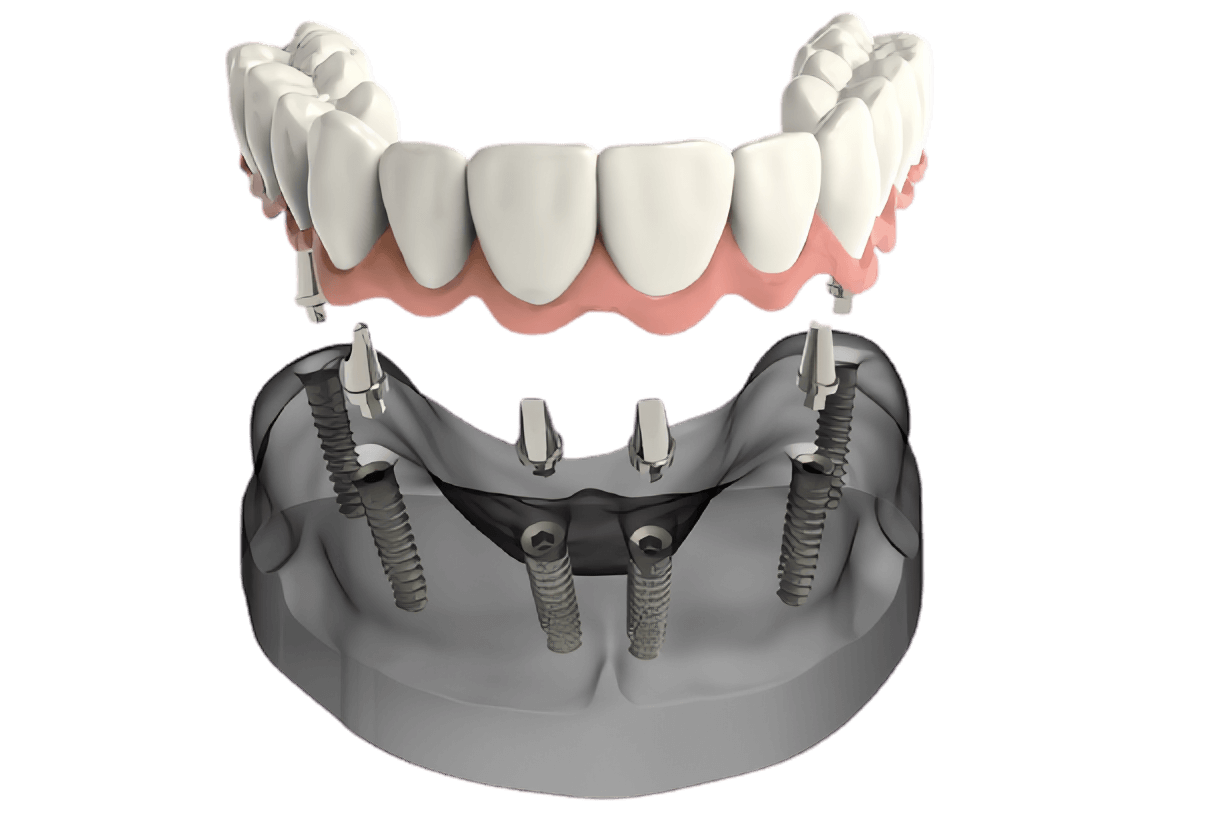Угол наклона титанового стержня регулируют хирургическим шаблоном и компенсируется особым строением соединительного элемента – абатмента (multi-unit).
